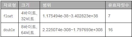아래 표는 실수 자료형만을 나타낸 것이다.