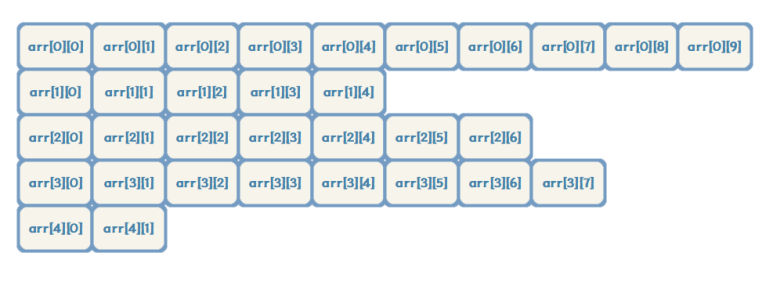C# 에서는 가변 배열을 지원하는데 이는 배열의 배열이라고 생각하면 쉽다.